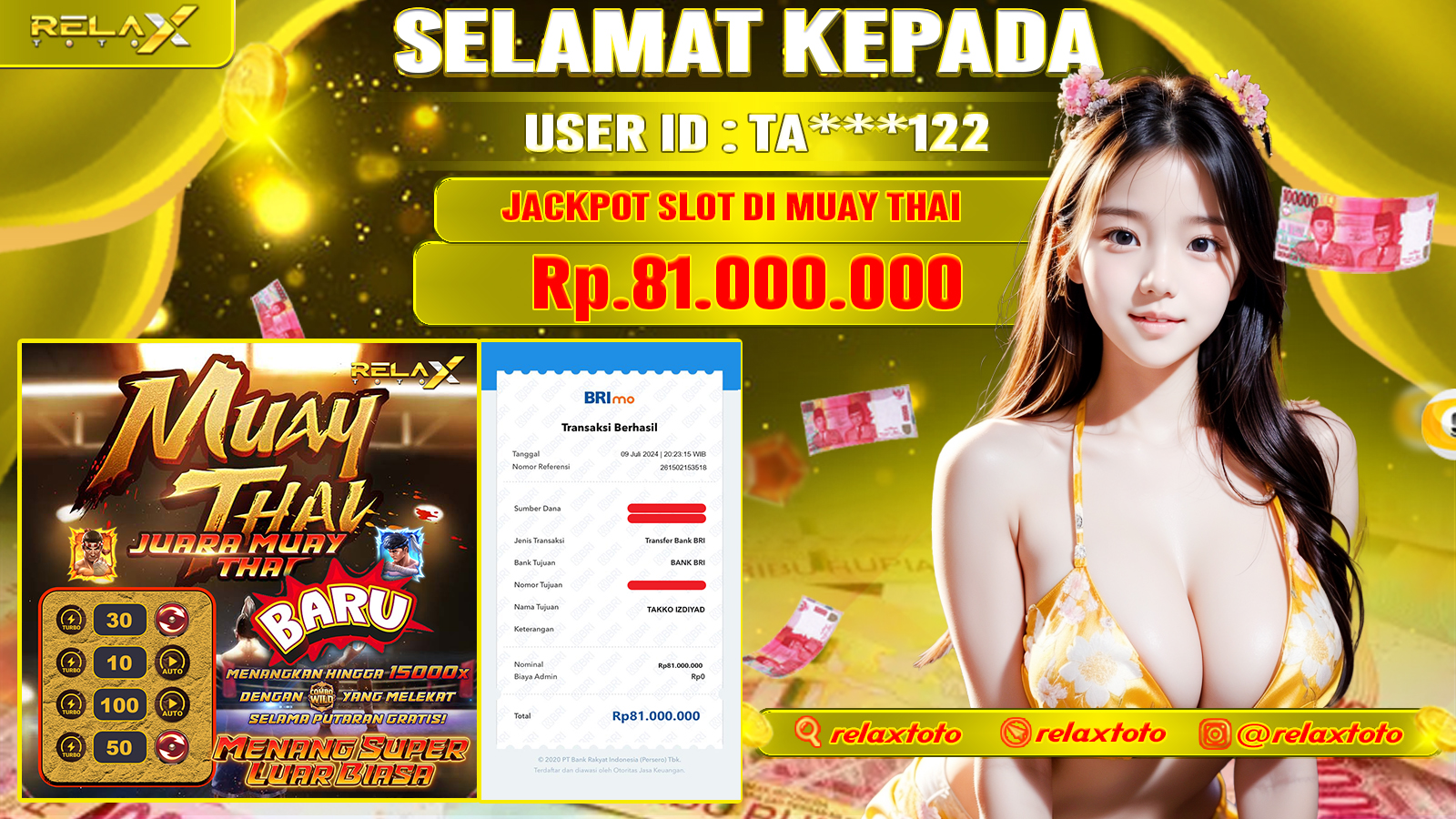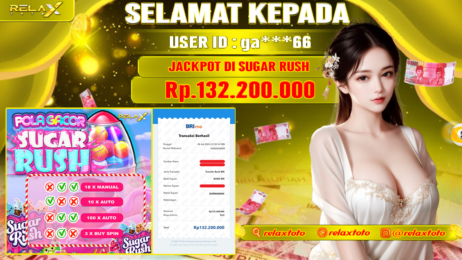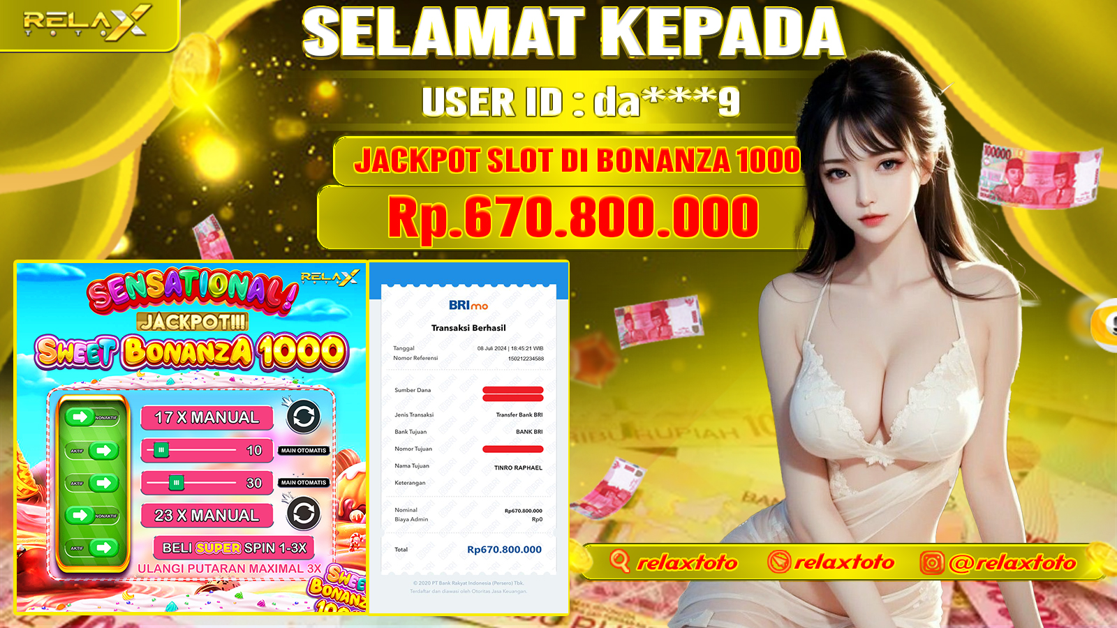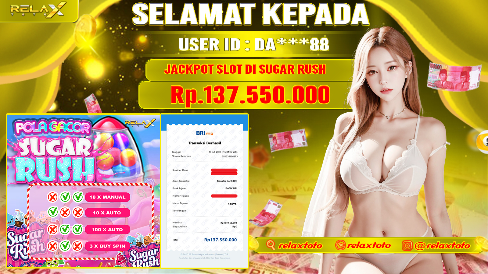 ~> Bonus dapat diwithdrawkan atau dimainkan di semua permainan Relaxtoto