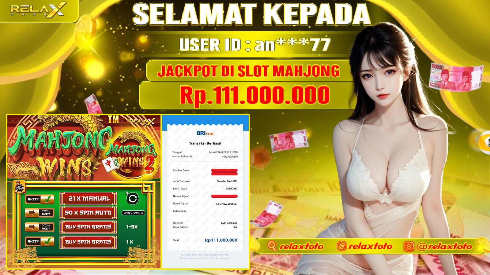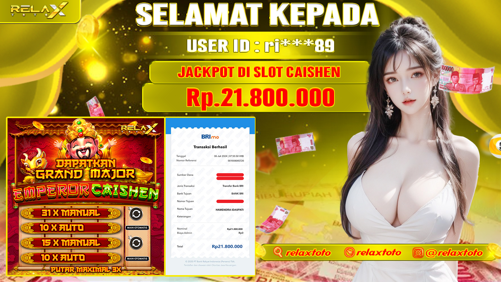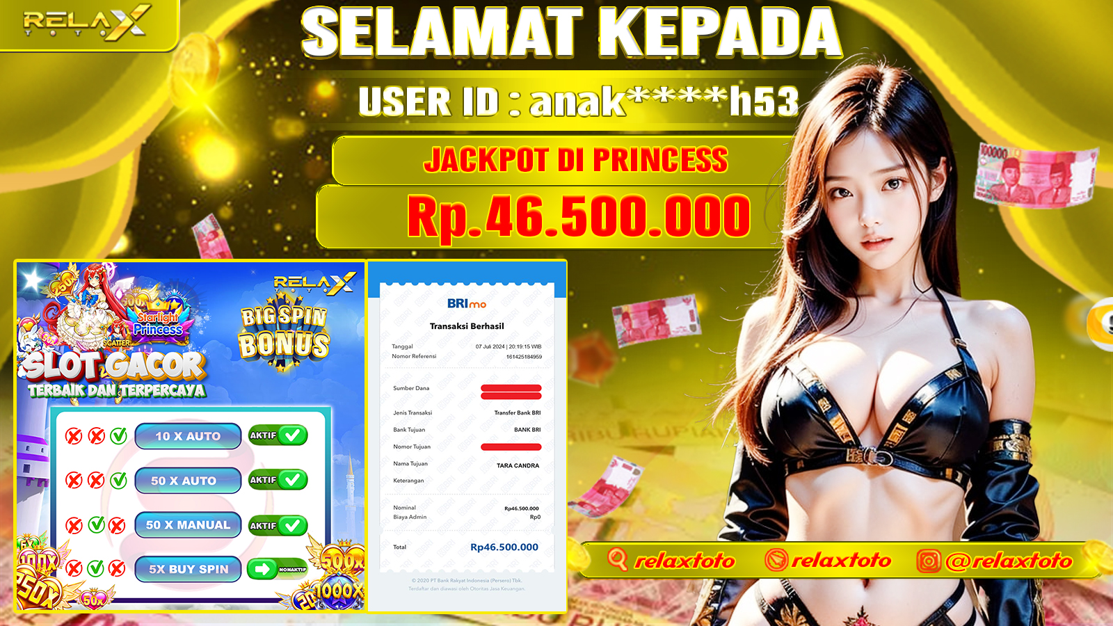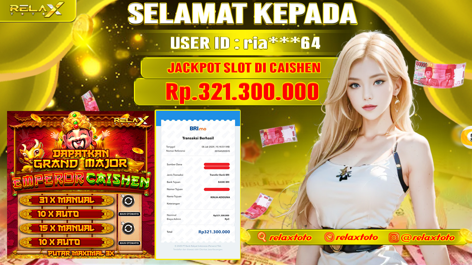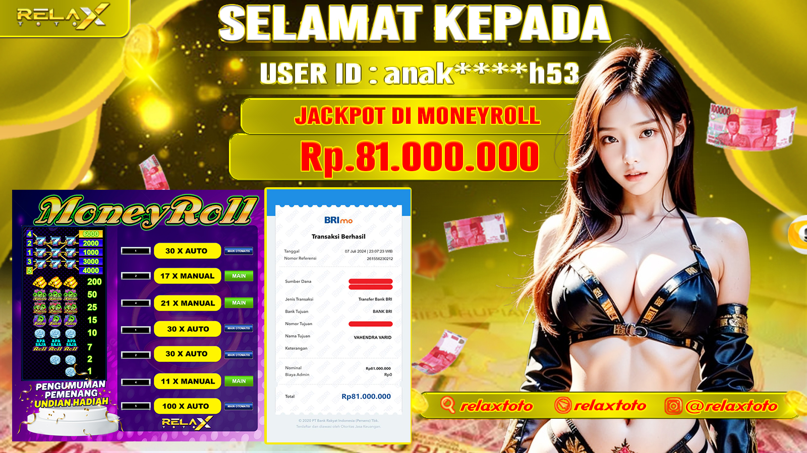 ~> Bonus dapat diwithdrawkan atau dimainkan di semua permainan Relaxtoto