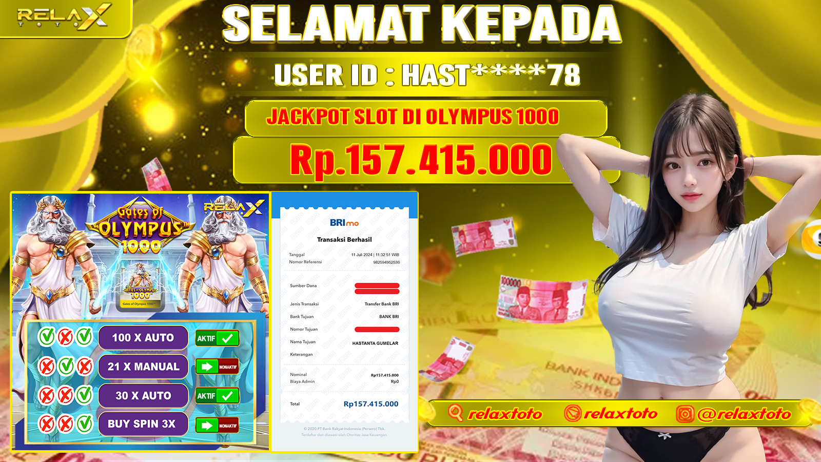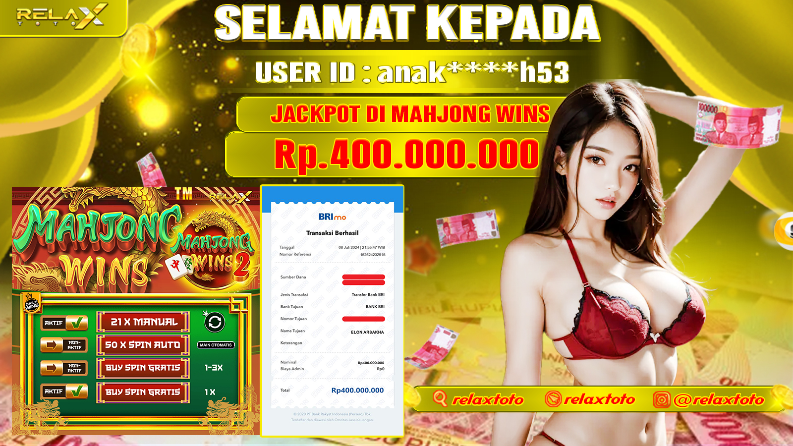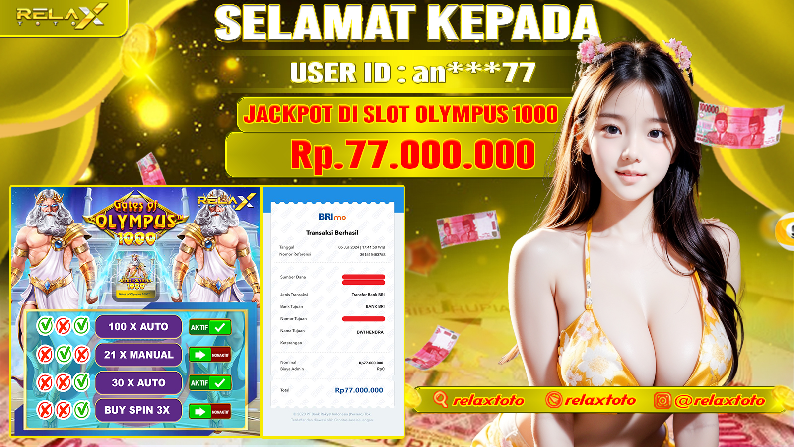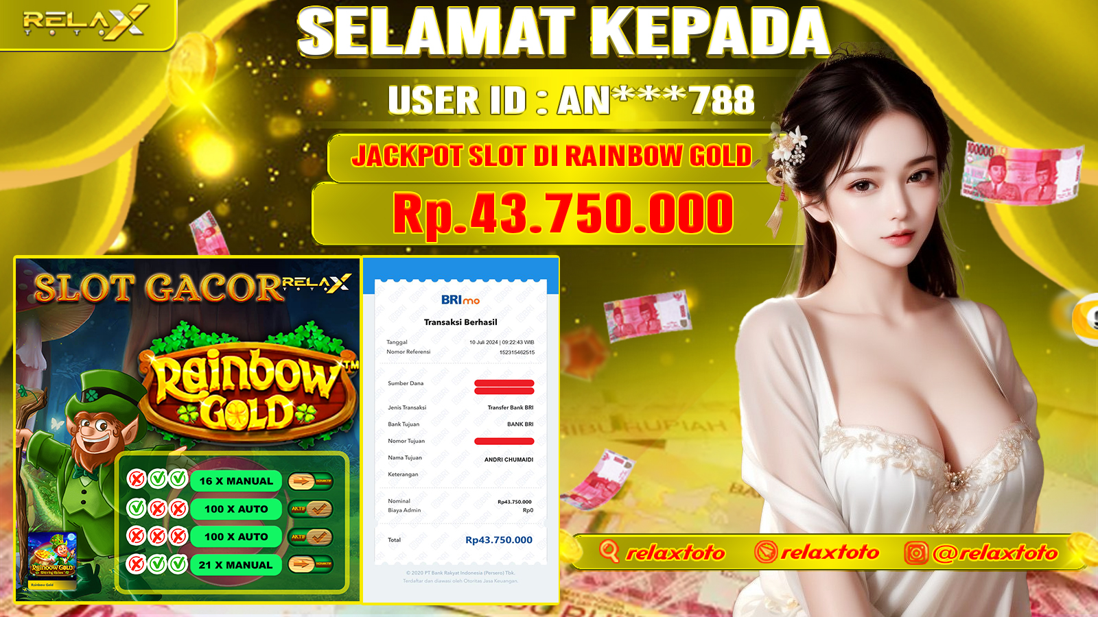 ~> Bonus dapat diwithdrawkan atau dimainkan di semua permainan Relaxtoto